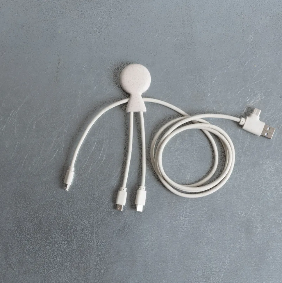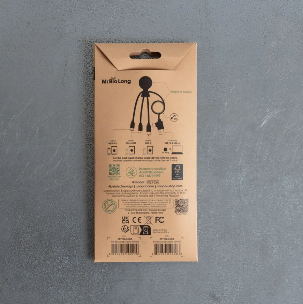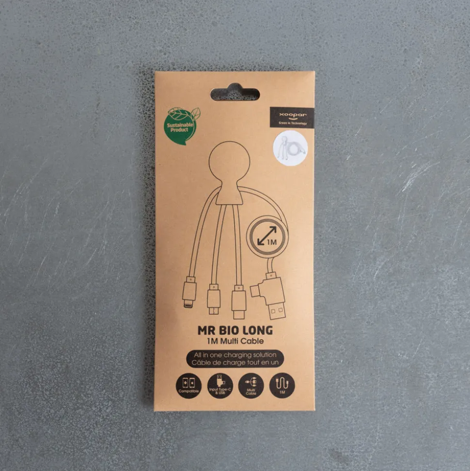 Mr Bio est un câble de charge multi-connecteurs doté d’une connectique Type C In u0026amp; Out, d’un câble Lightning, USB et Micro-USB. Grâce à lui, vous pouvez recharger n’importe quel téléphone portable et le reste de vos appareils. Très pratique, il s’intègre à votre trousseau de clés pour l’avoir toujours sous la main.