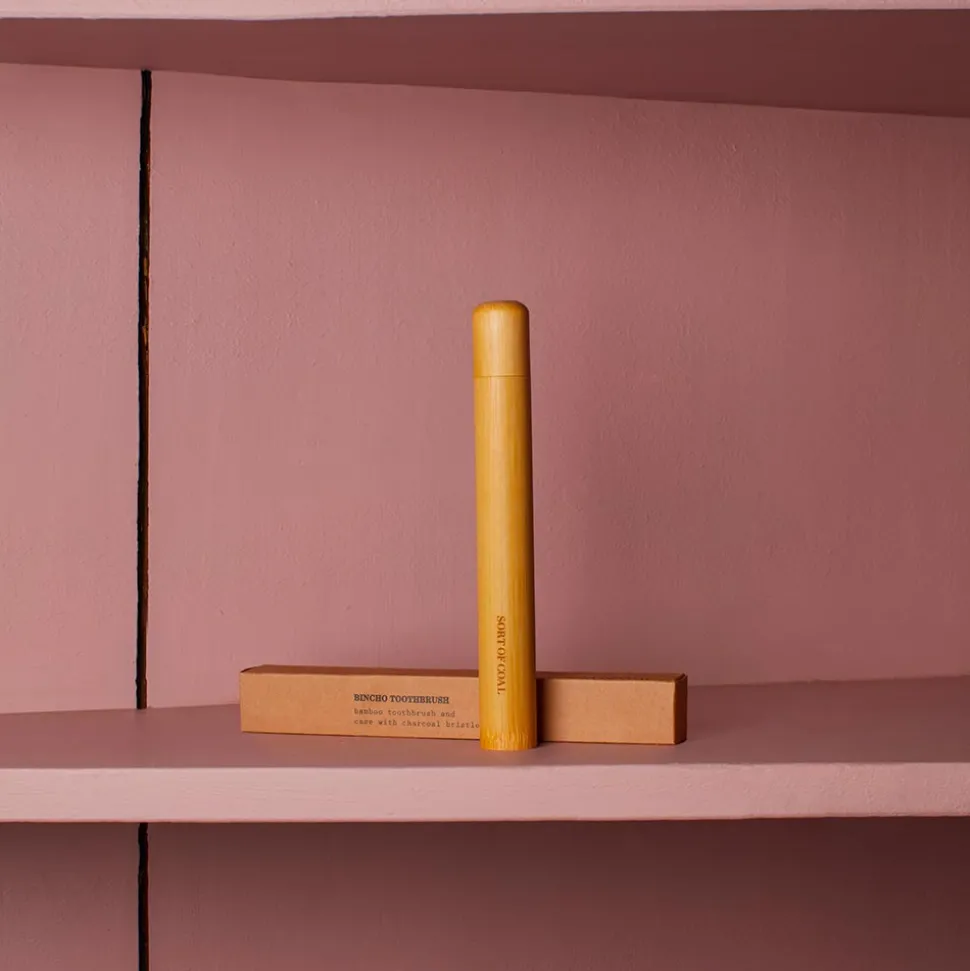 1010 SORT OF COAL Brosse À Dents Et Dentifrice|Accessoires De Salle De Bain-Brosse à dent avec étui en bamboo
