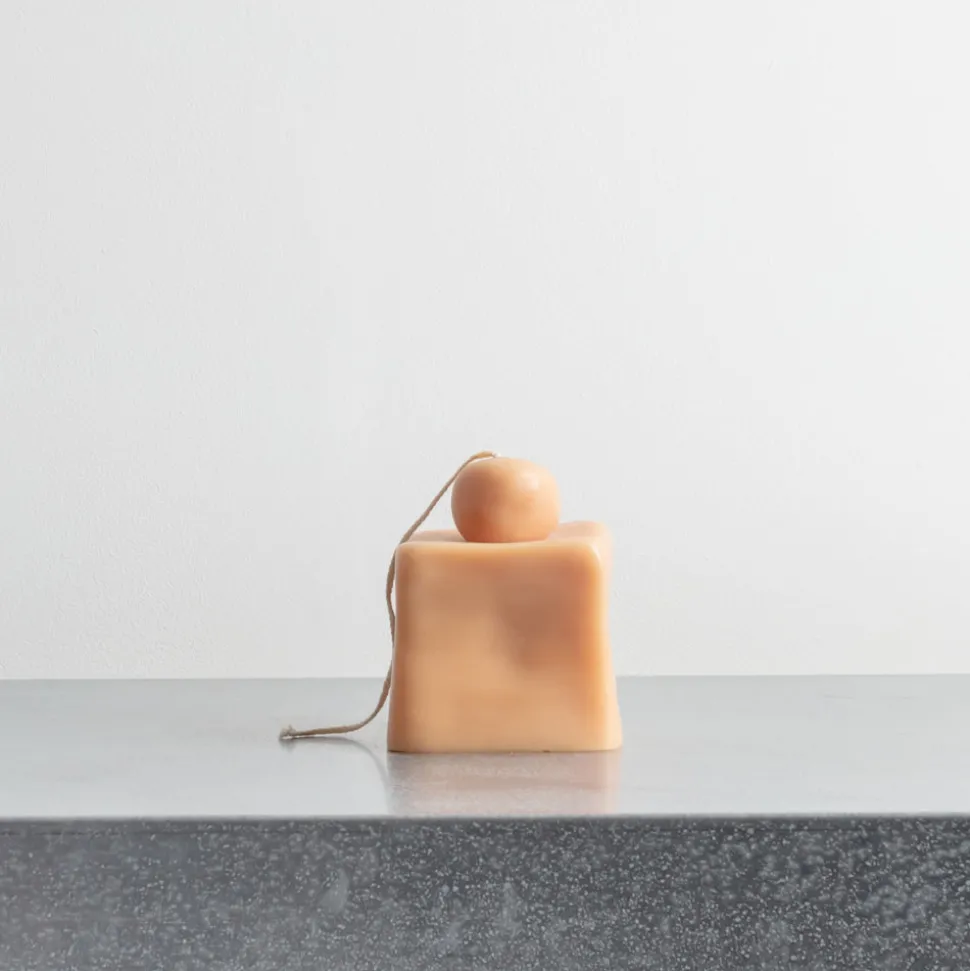 Bougie Fonz couleur sable imaginée par Ann Vincent, artiste multidisciplinaire belge