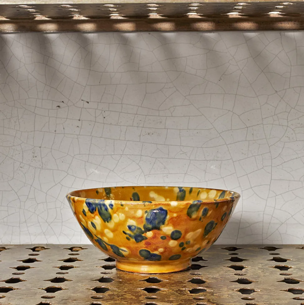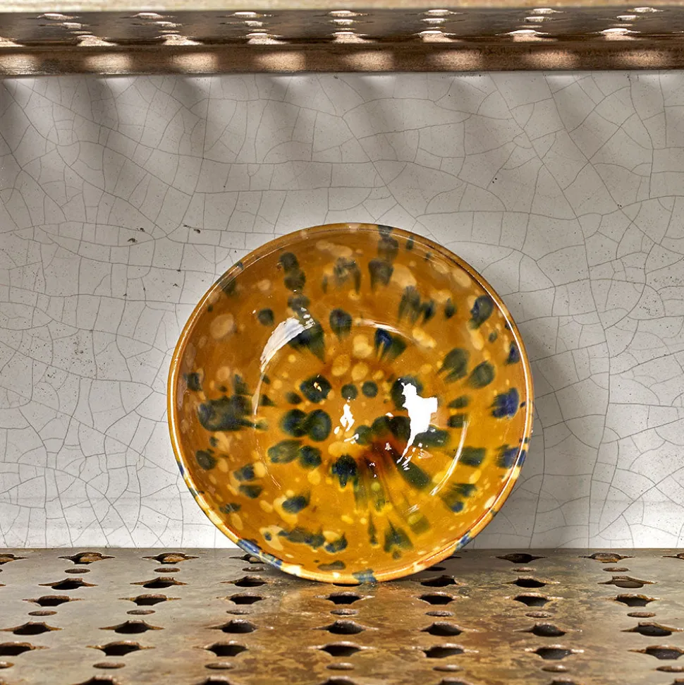 Les couleurs sont projetées en gouttes sur la céramique afin de créer un décor unique.