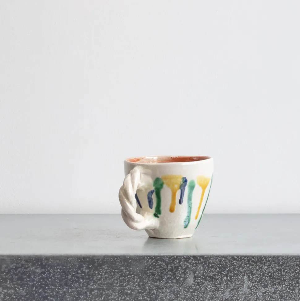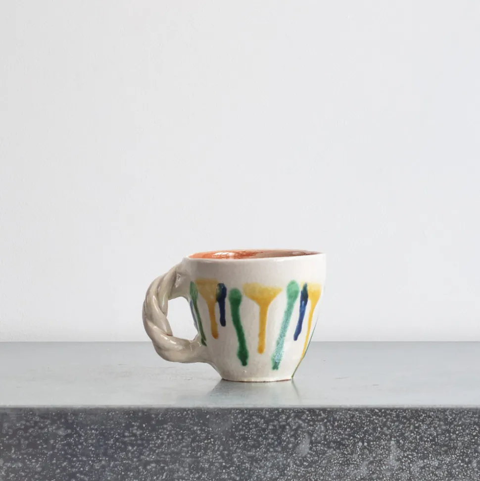 Pour la série ‘Cadaqués’, les objets sont émaillés et décorés de coulures qui se mélangent et se chevauchent