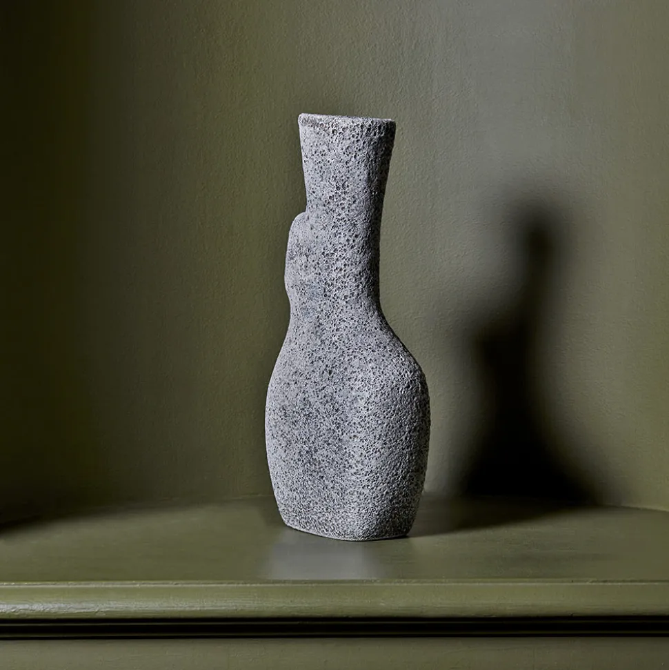 Vase Yara en céramique avec des tons terreux et des textures brutes
