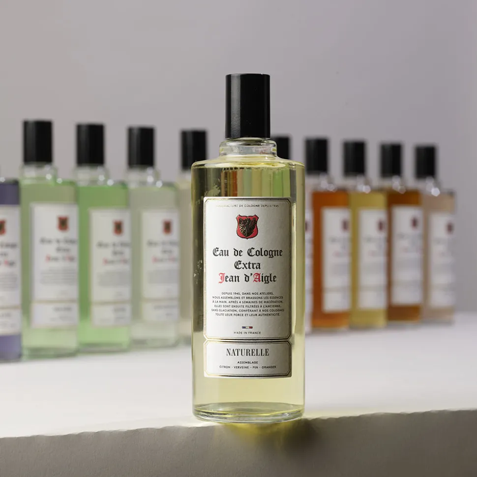 La maison Jean d’Aigle naît en 1945, ses eaux de cologne sont façonnées depuis plus de 70 ans selon le même procédé et dans le respect des traditions. La naissance d’une fragrance est le résultat d’un savoir-faire combiné aux gestes rituels de ceux qui la confectionnent : des essences de caractère sont assemblées pour concevoir la fragrance idéale, faite de notes fortes et intemporelles.
