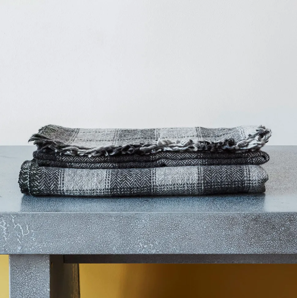Plaid d’hiver en 100% laine à rayures grises
