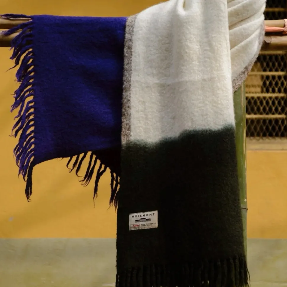 1050 MOISMONT Plaids & Couvertures-Plaid en laine n°83 – Kaki & Bleu Encre – Moismont