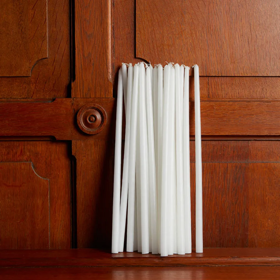 Set de 25 bougies fines blanches en cire