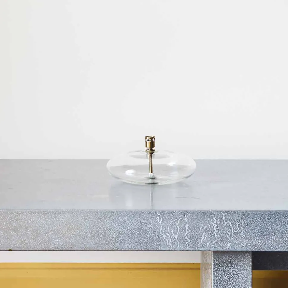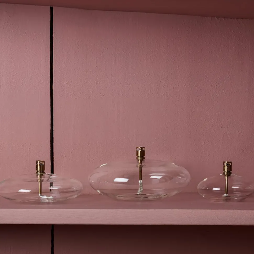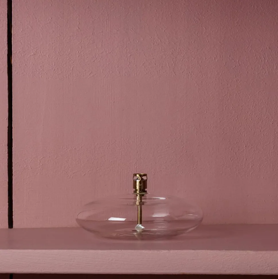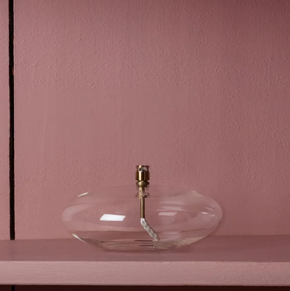 Lampe à huile en verre et laiton. Mèche en fibre de verre