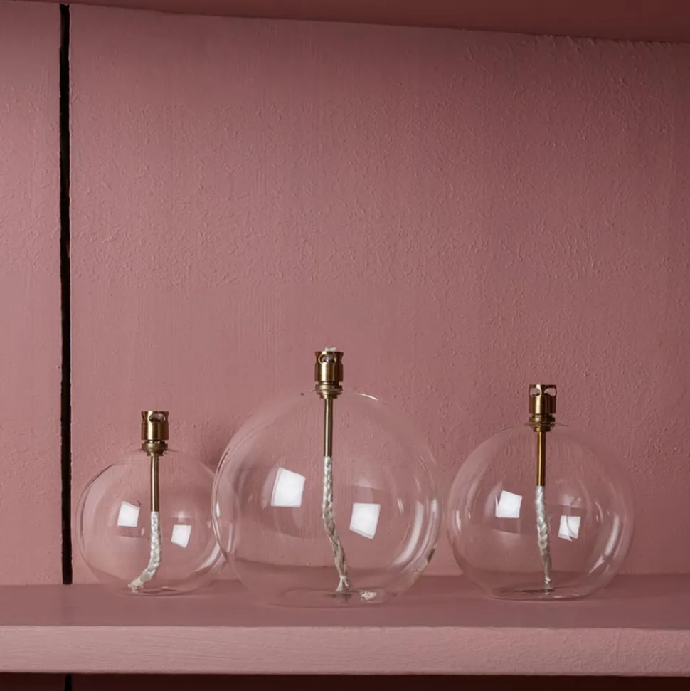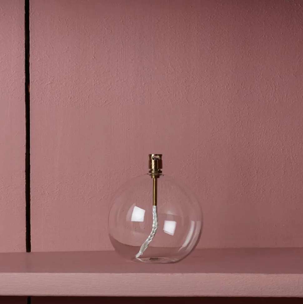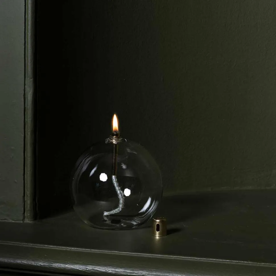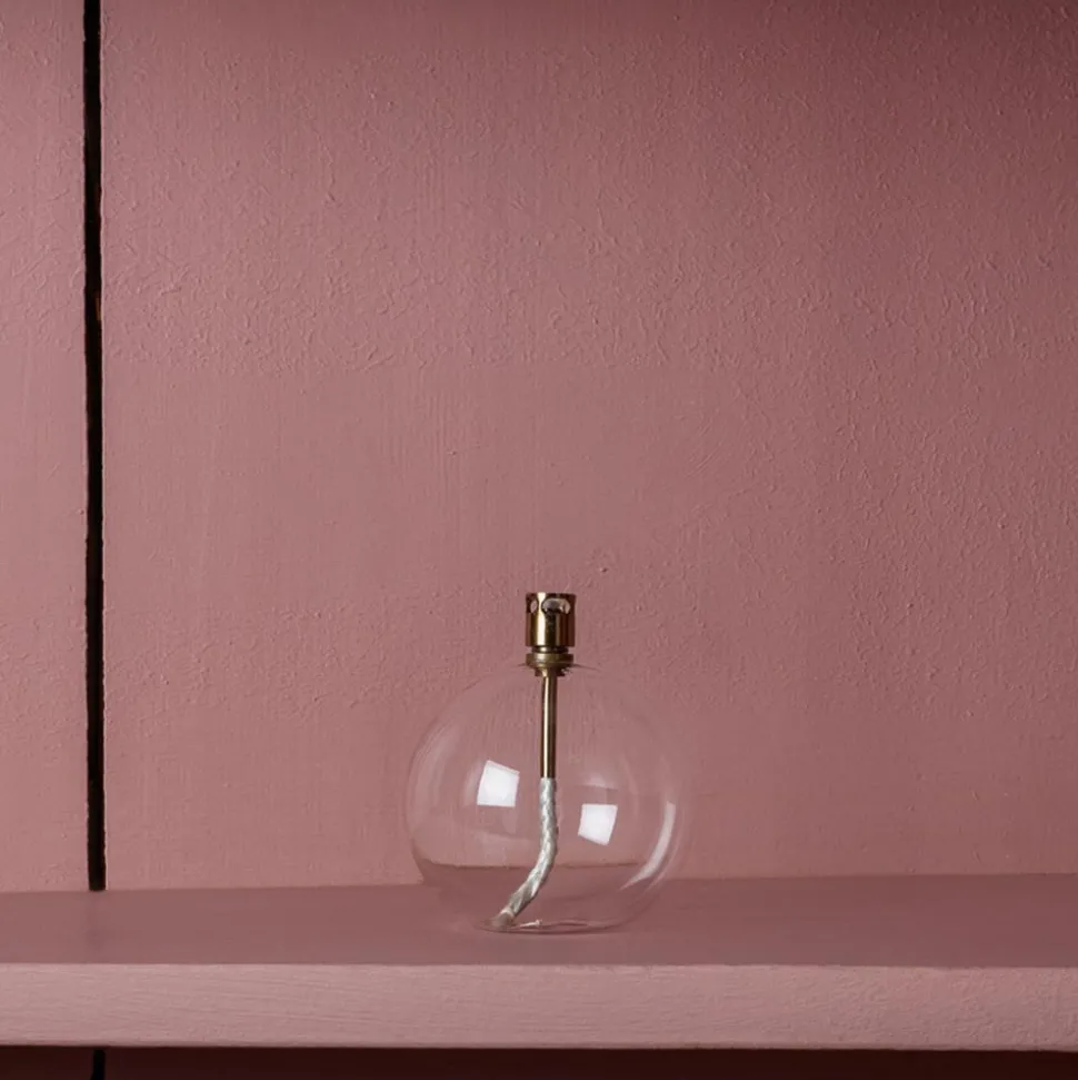 Lampe à huile en verre et laiton. Mèche en fibre de verre