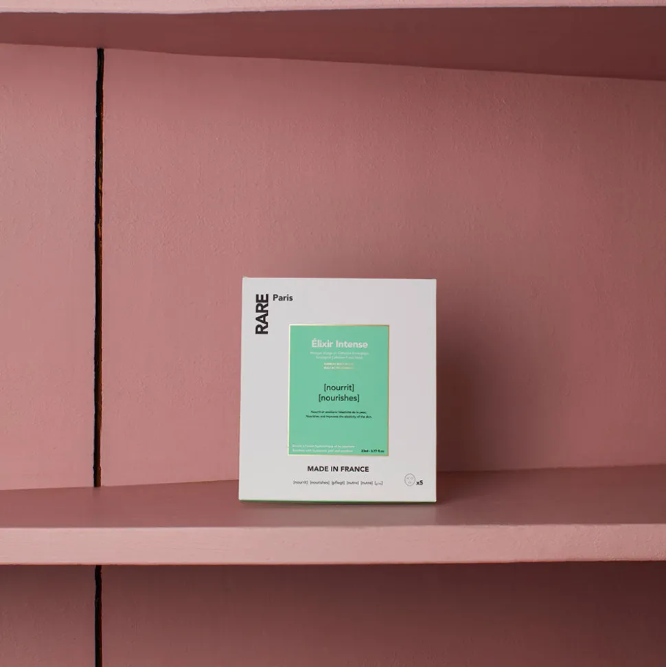 RARE, ce sont 4 lettres, 4 masques pour le visage pensés pour répondre aux 4 besoins rencontrés par tous les types de peaux : purifier (Carbone Glacé), nourrir (Elixir Intense), apaiser (Trésor Solaire), régénérer (Exception Rosée). 100% made in France, ils sont conçus dans des laboratoires à Amilly et bénéficient de toute l’expertise française en la matière.