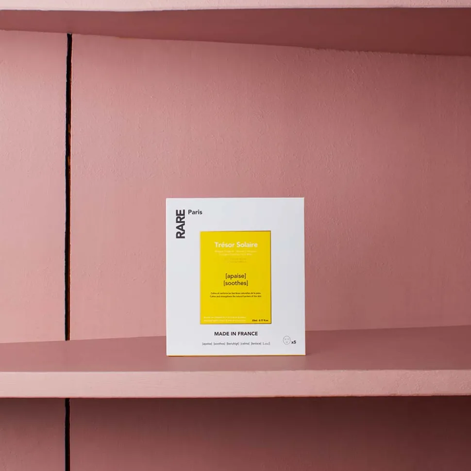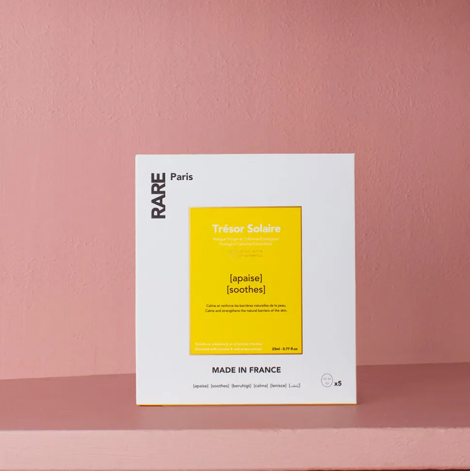 RARE, ce sont 4 lettres, 4 masques pour le visage pensés pour répondre aux 4 besoins rencontrés par tous les types de peaux : purifier (Carbone Glacé), nourrir (Elixir Intense), apaiser (Trésor Solaire), régénérer (Exception Rosée). 100% made in France, ils sont conçus dans des laboratoires à Amilly et bénéficient de toute l’expertise française en la matière.