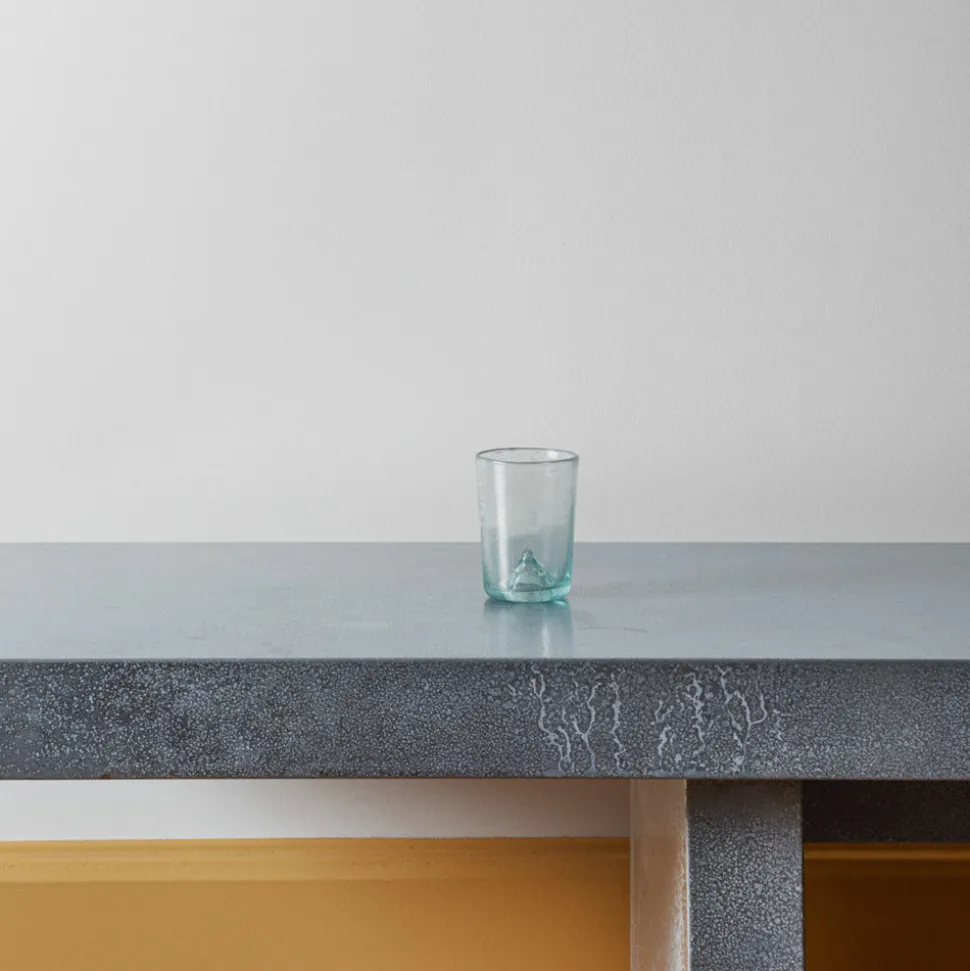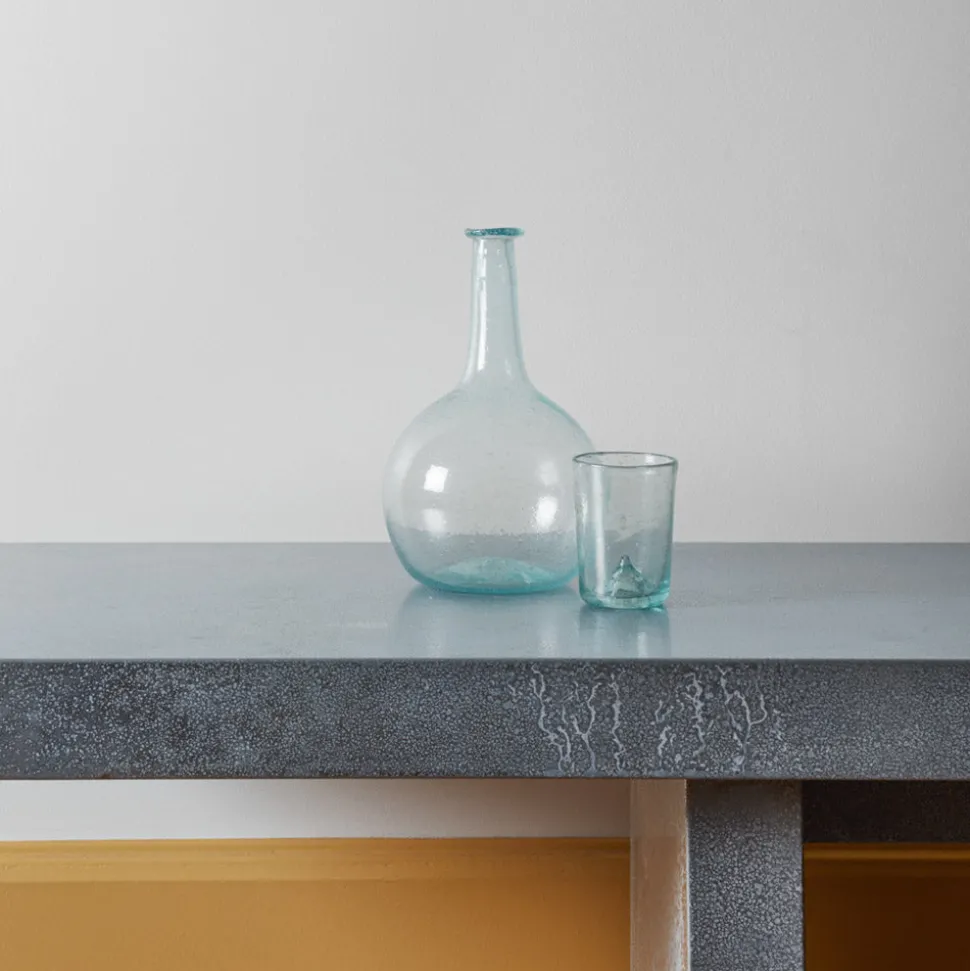 Ensemble de verre et carafe Salaheddin soufflé à la bouche à partir de verre recyclé en Syrie, auprès d’artisans souffleurs de verre perpétuant leur savoir-faire et leur activité malgré la guerre