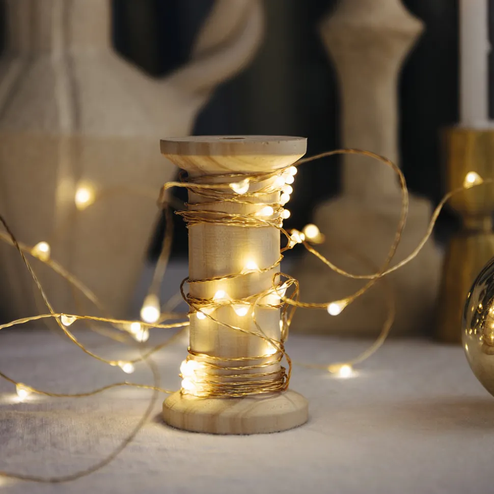 Guirlande sur fil métal doré à enrouler et dérouler. Apportez une touche lumineuse et magique à votre table, votre cheminée..