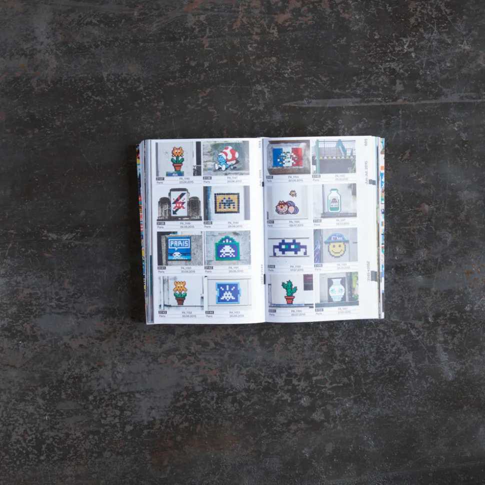 Ville par ville, année par année, il présente tous les invaders numérotés agencés en grilles dans les pages, ainsi qu’avec des photos des petits envahisseurs de carrelage in situ en fin de chaque chapitre.