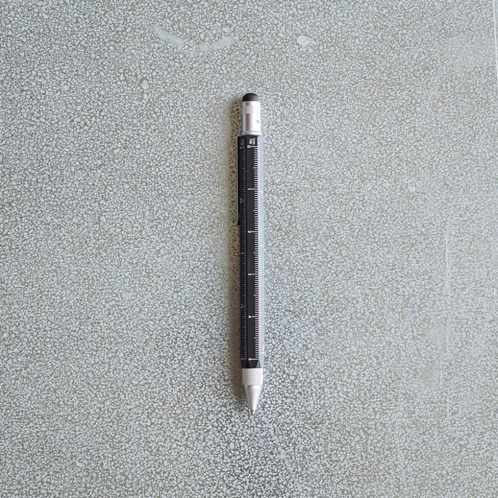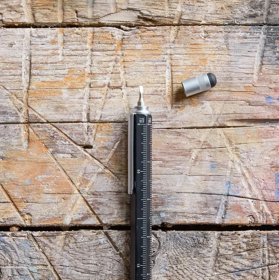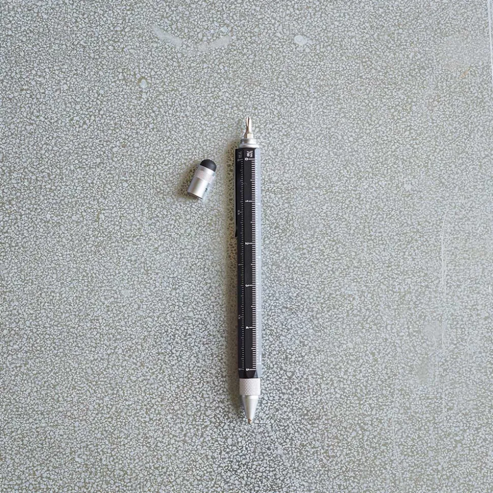 Ce stylo est un mini outil de planification et mallette à outils en un – avec différentes échelles, règle en centimètres et en pouces, tournevis plat / cruciforme, stylet