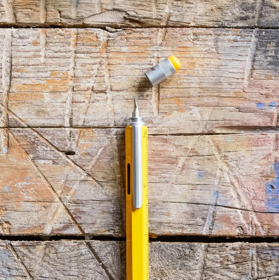 Ce stylo est un mini outil de planification et mallette à outils en un – avec différentes échelles, règle en centimètres et en pouces, tournevis plat / cruciforme, stylet