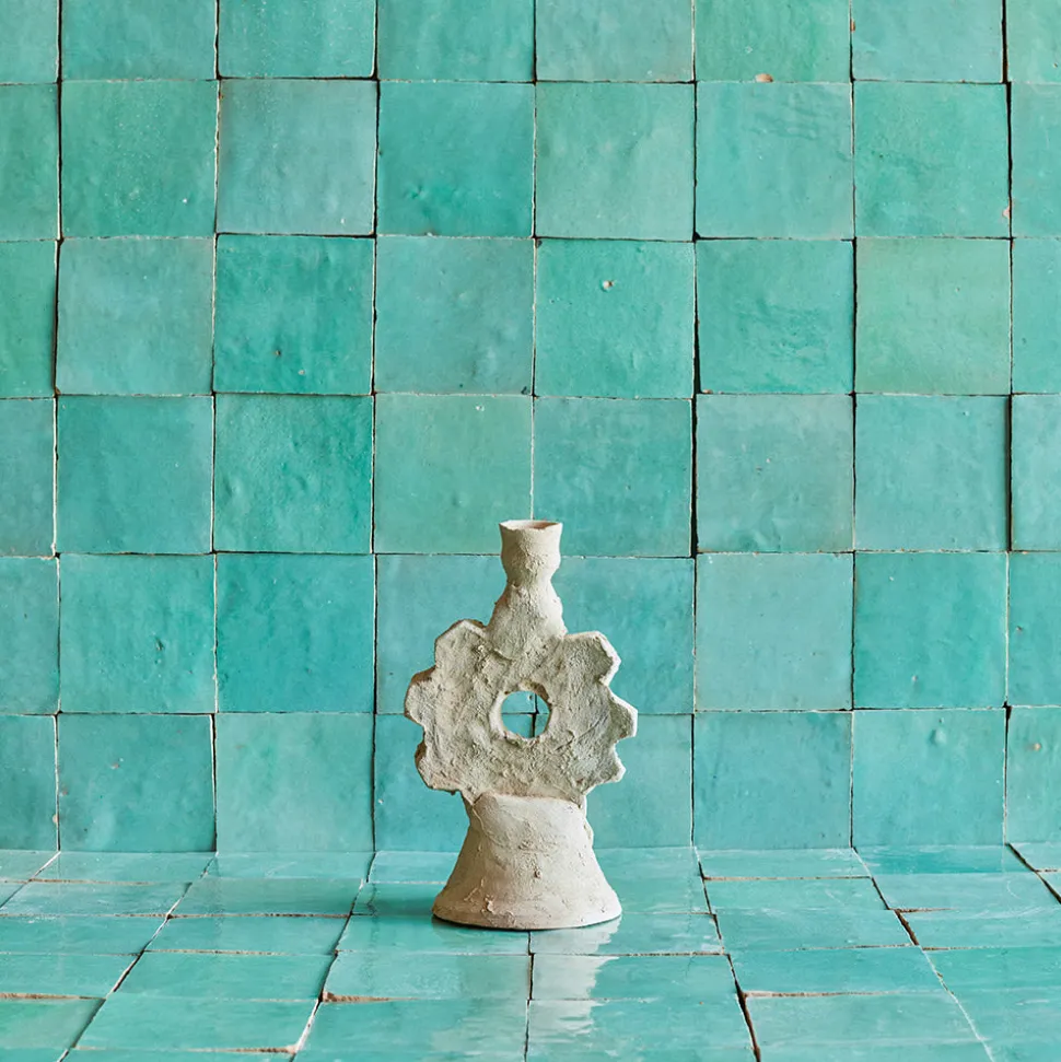Bougeoir en céramique fabriqué à Tamegroute au Maroc et sélectionné à la main, pour sublimer vos tables lors de dîners