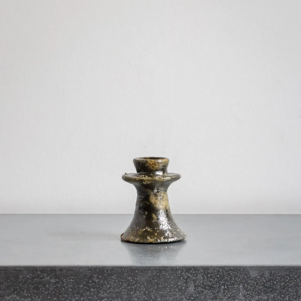 Petit bougeoir en céramique jaune moutarde fait à la main à Tiznit au Maroc