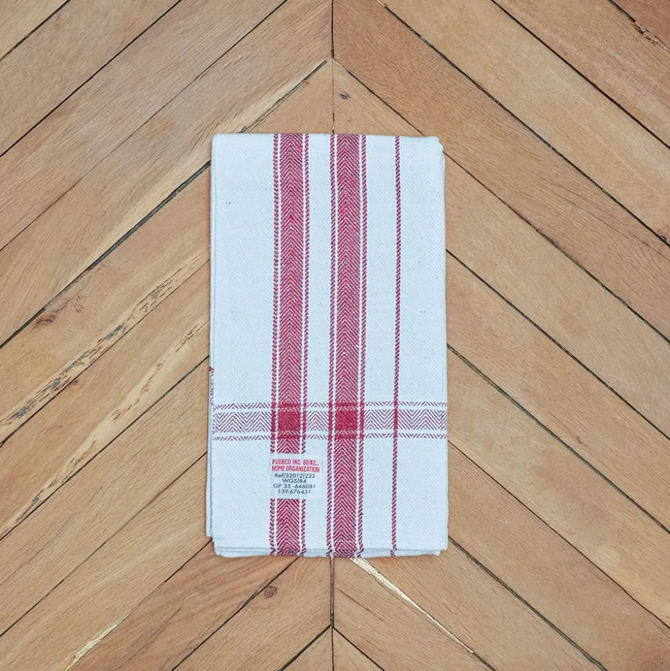 Cette couverture en coton recyclé de couleur naturel et rouge comblera les plus frileux d’entre vous