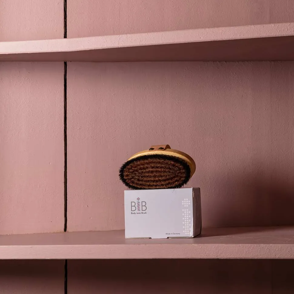 Brosse de massage Body Iconic en bois de hêtre huilé et poils en crin de cheval qui vous aidera à trouver le bien-être physique et psychique