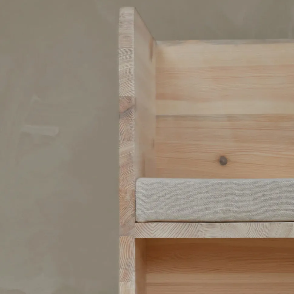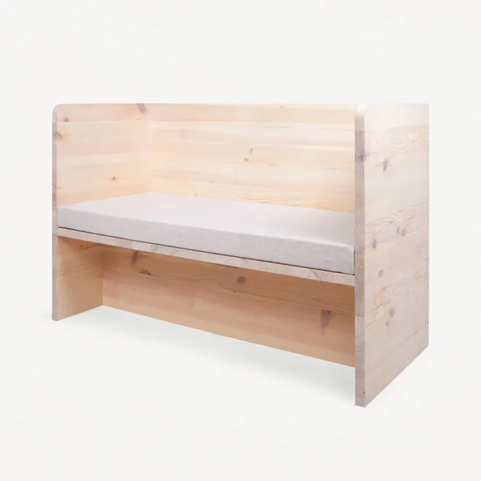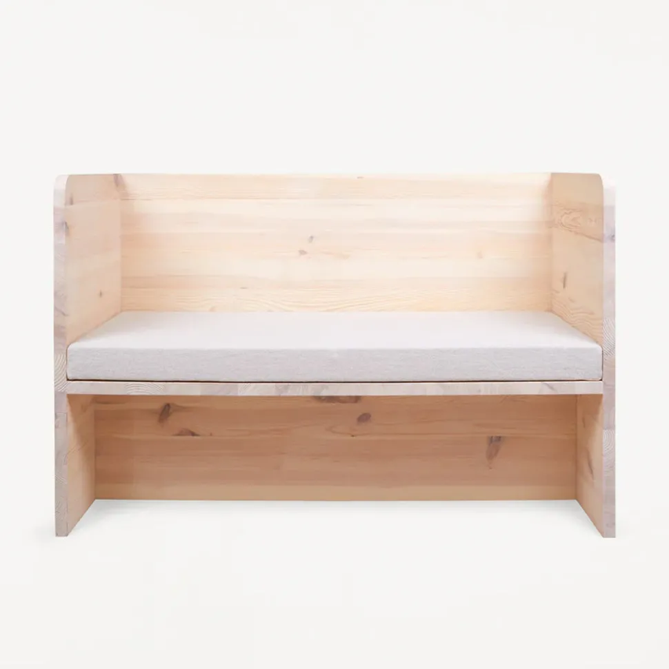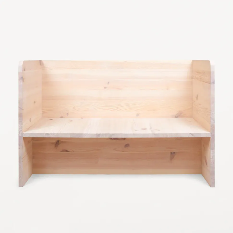 Le canapé Atelier est un meuble brut et ultra-simple pour deux personnes, conçu en épicéa de haute qualité.