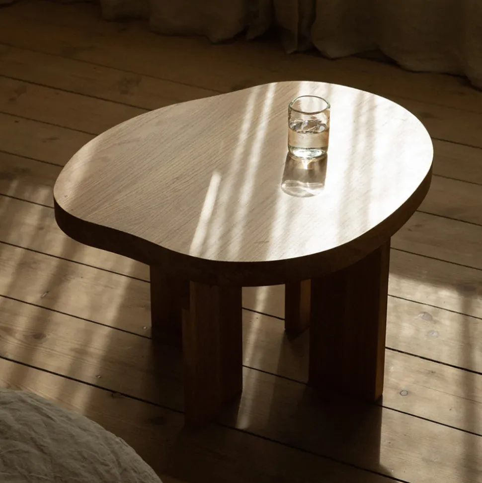 La table d’appoint Pond de la collection Farmhouse est un design sculptural et organique en forme de mare, fabriqué en chêne massif de haute qualité.