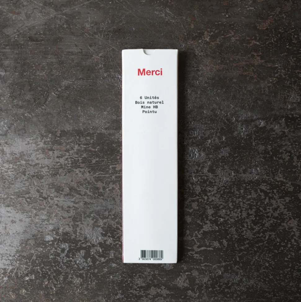 Boite de 6 crayons à papier signée MerciMine HBMine pointueMade in Portugal par une entreprise qui existe depuis 1931C…