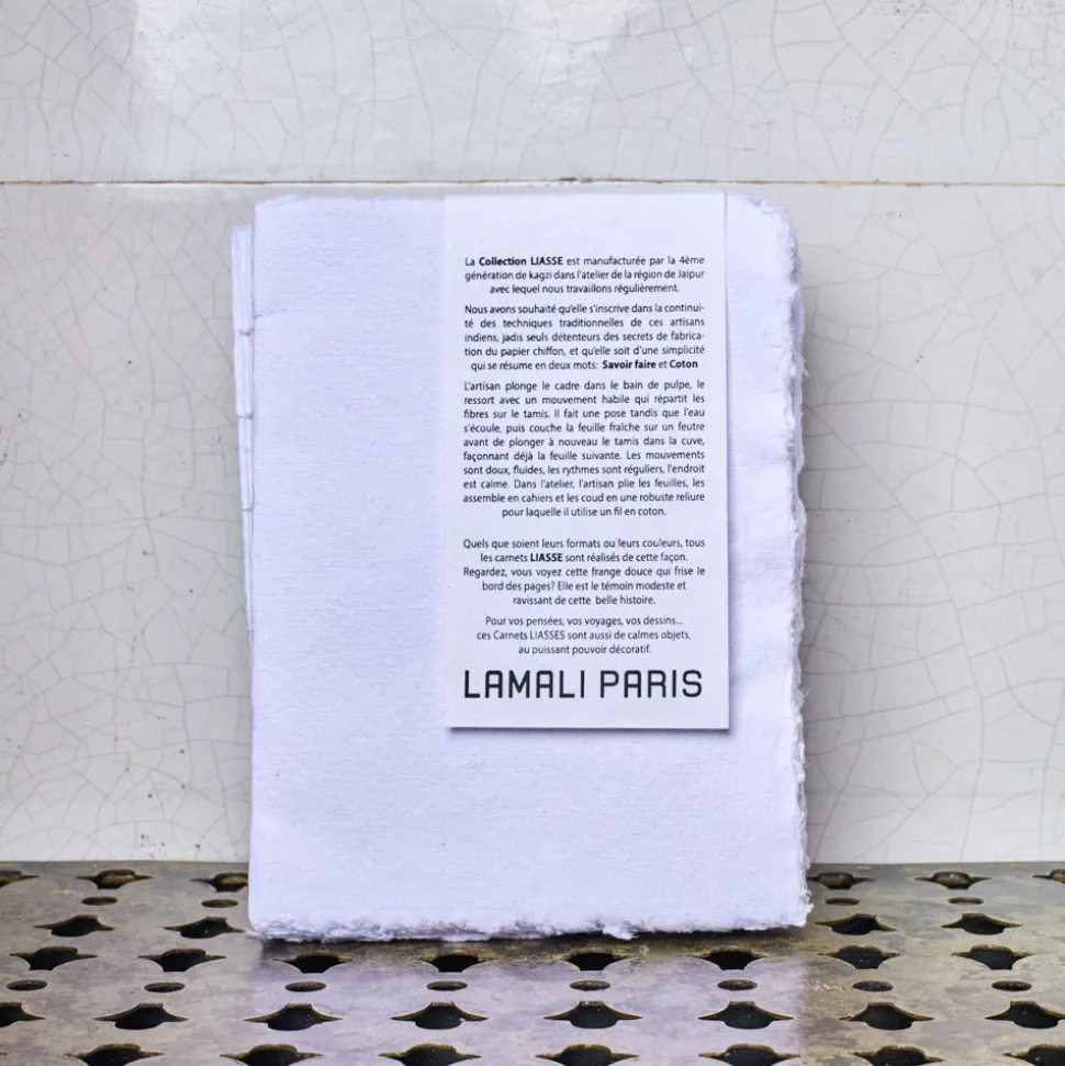 Fabriqué à la main à partir de techniques traditionnelles des Artisans Indiens, seuls détenteurs des secrets de fabrication du papier chiffon, que l’on peut résumer à deux mots : SAVOIR FAIRE u0026amp; COTON
