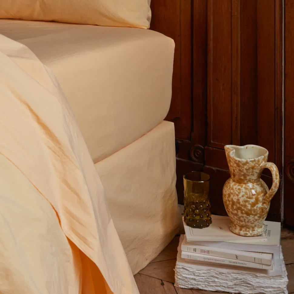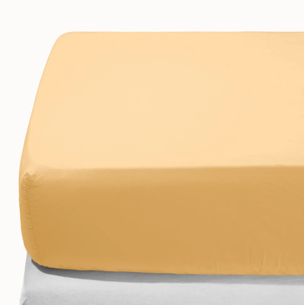 1700 COTEX Draps Housse-Drap-housse en percale de coton – Jaune Orge