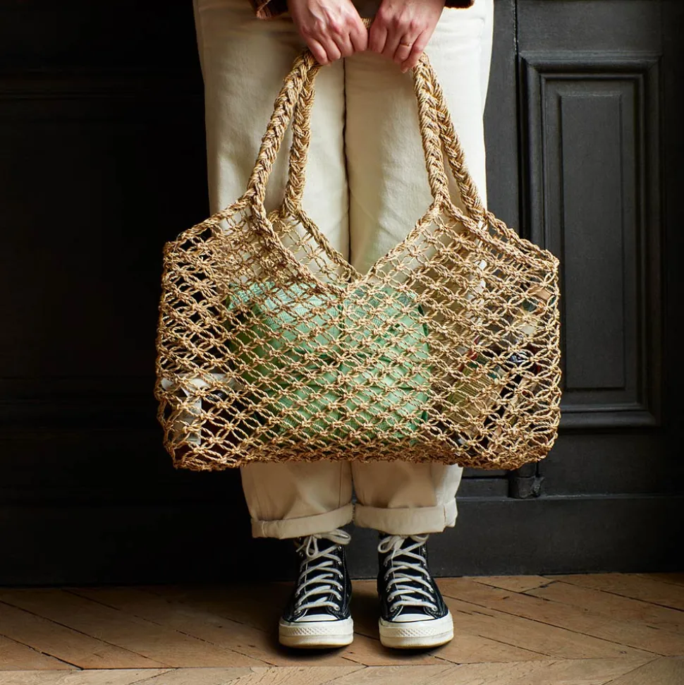 Cabas en palmier tressé à la main. Les feuilles de palmier étant très solides, ce cabas vous durera dans le temps