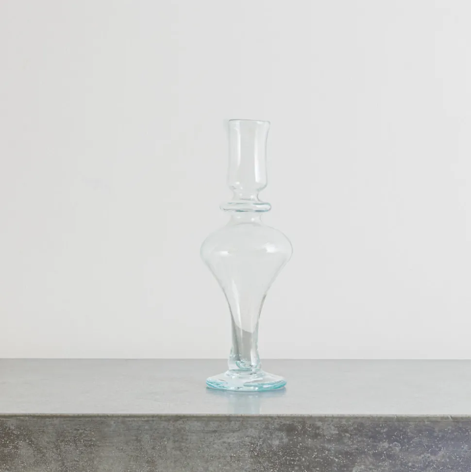 Ici, le « Flambeau » est un long bougeoir élégant qui aurait fière allure entre deux verres à vin rouge sur une longue table, mais qui peut également être utilisé comme un vase à fleurs.