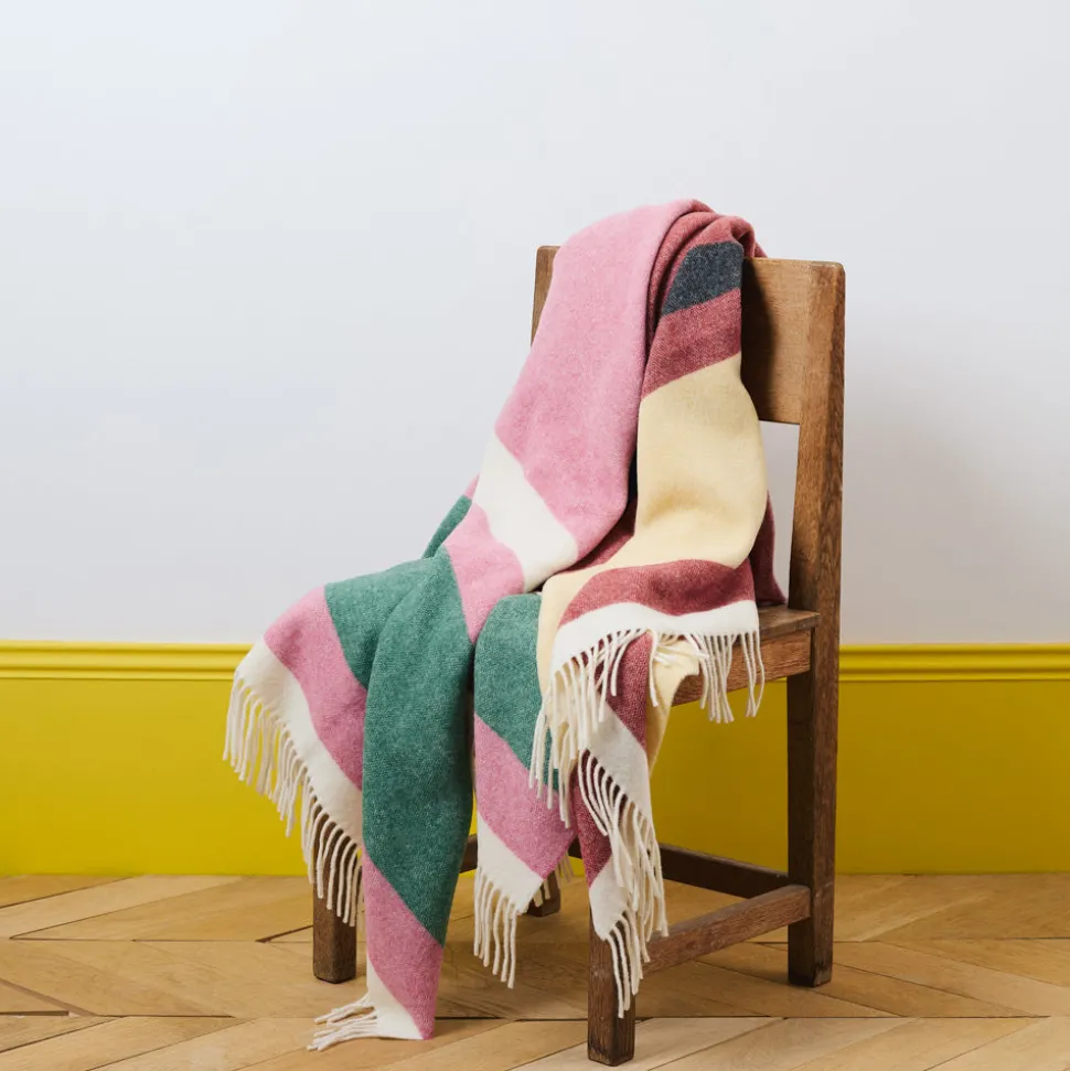 La couverture à rayures est fabriquée selon la technique toscane traditionnelle.