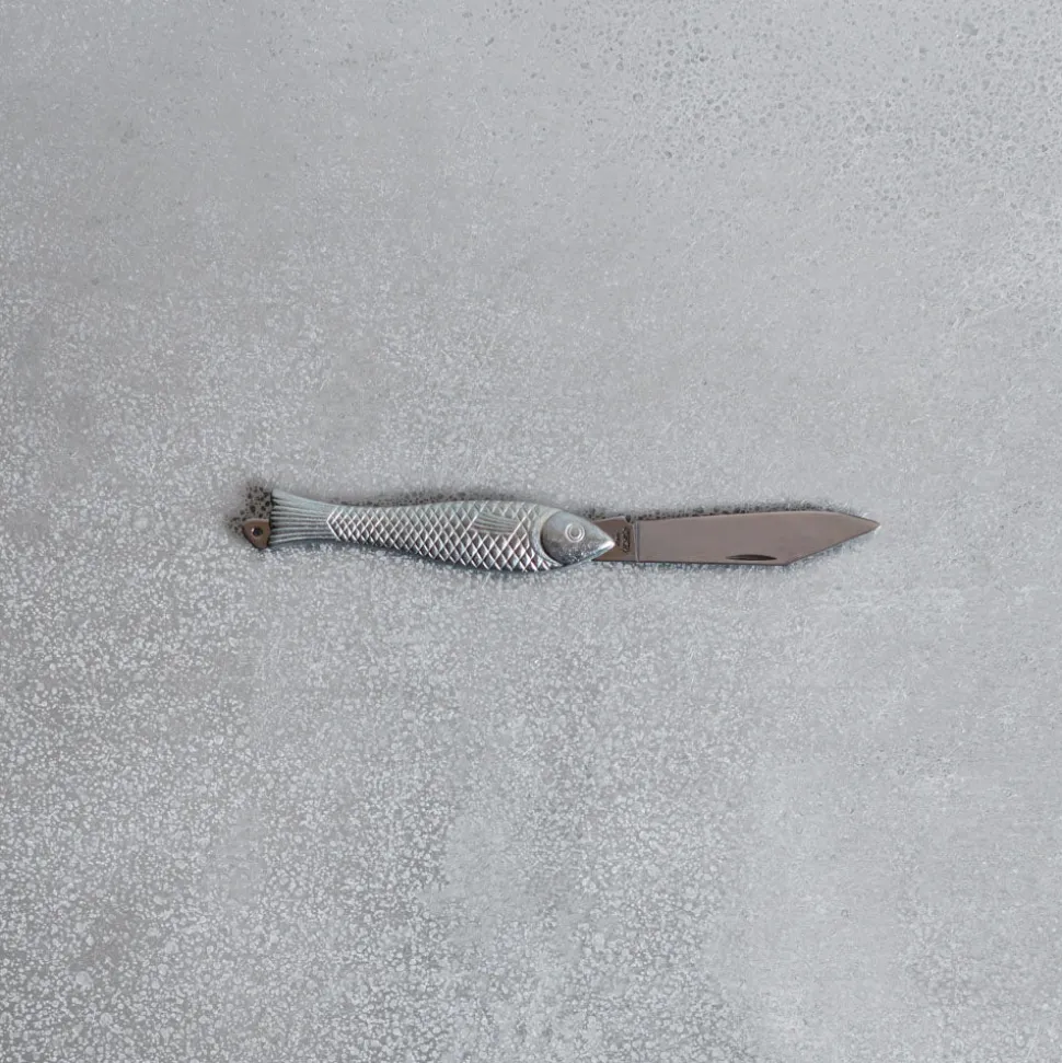 Couteau Poisson argenté – 130.S Un manche argenté avec finition or en forme de poissonFermeture à cran forcéPassant…