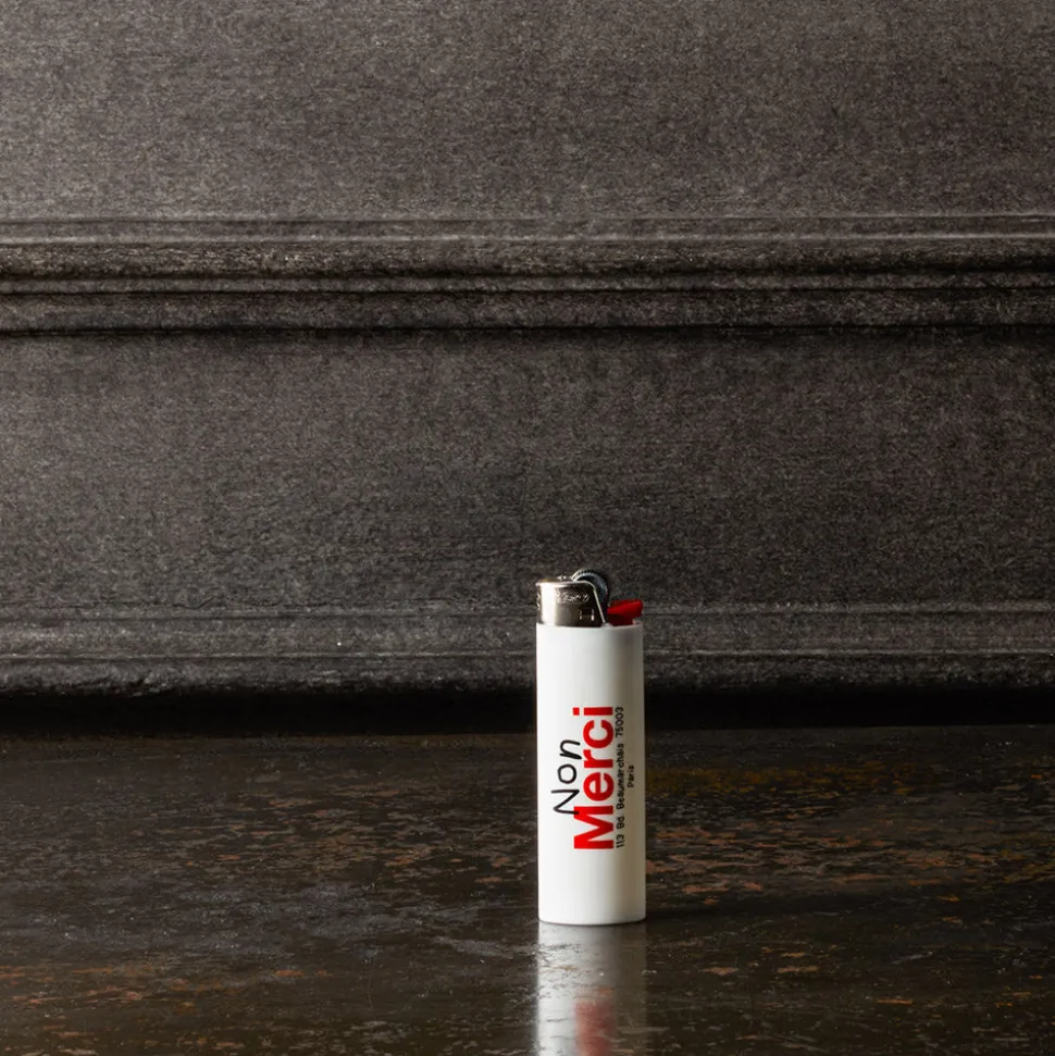 Briquet BIC classique de couleur blanche arborant le logo Non Merci