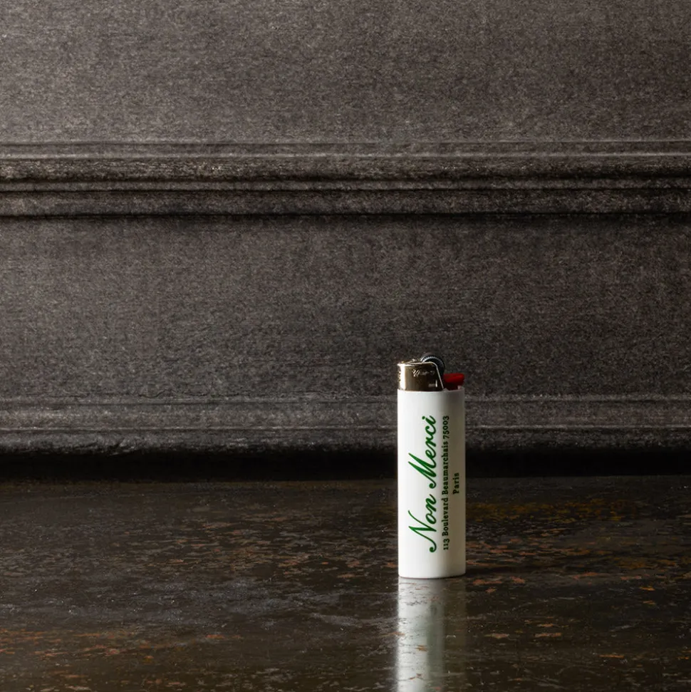 Briquet BIC classique de couleur blanche arborant le logo Non Merci