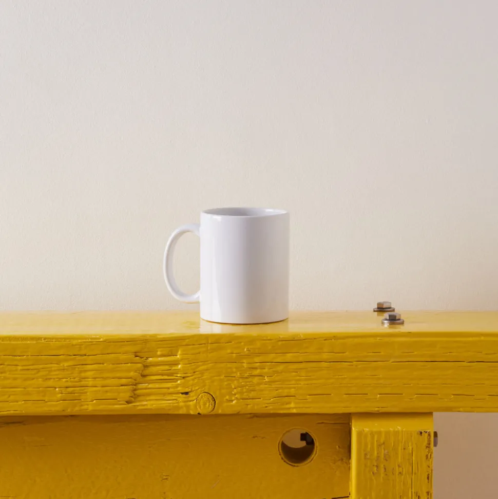 Mug de couleur blanche arborant d’un côté le logo Non Merci