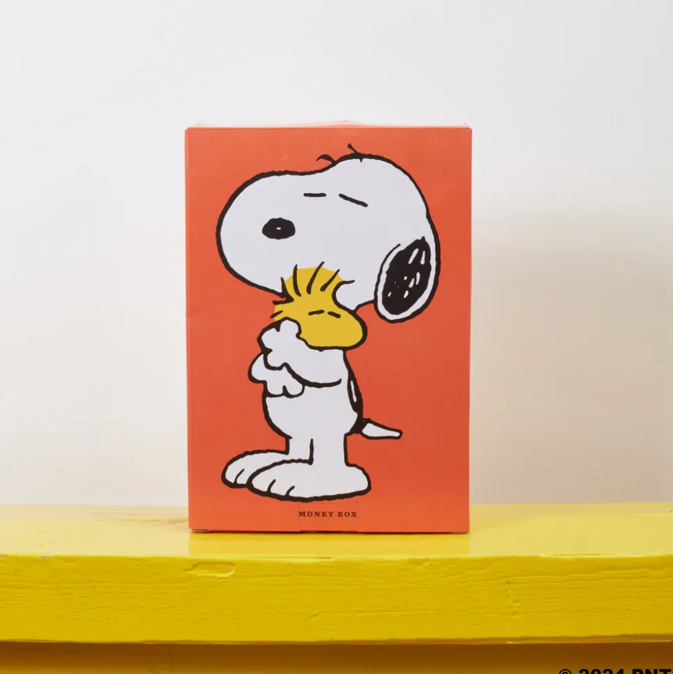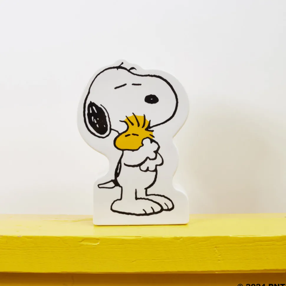 Tirelire Peanuts en forme du célèbre Beagle tant aimé de tous, accompagné de son fidèle ami Woodstock