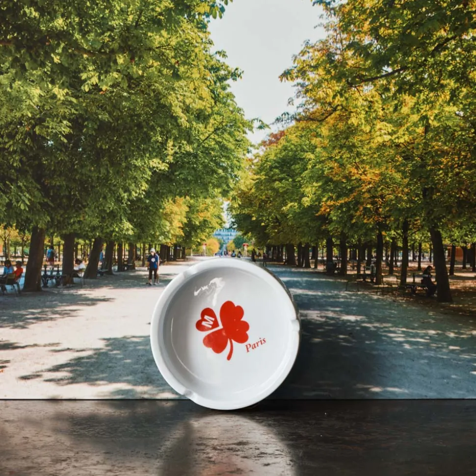 Cendrier classique de couleur blanche arborant à l’intérieur le logo Trèfle