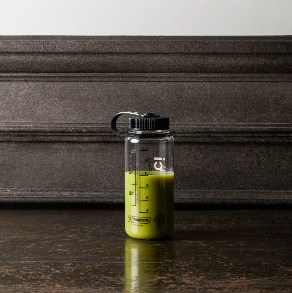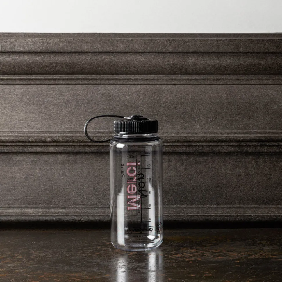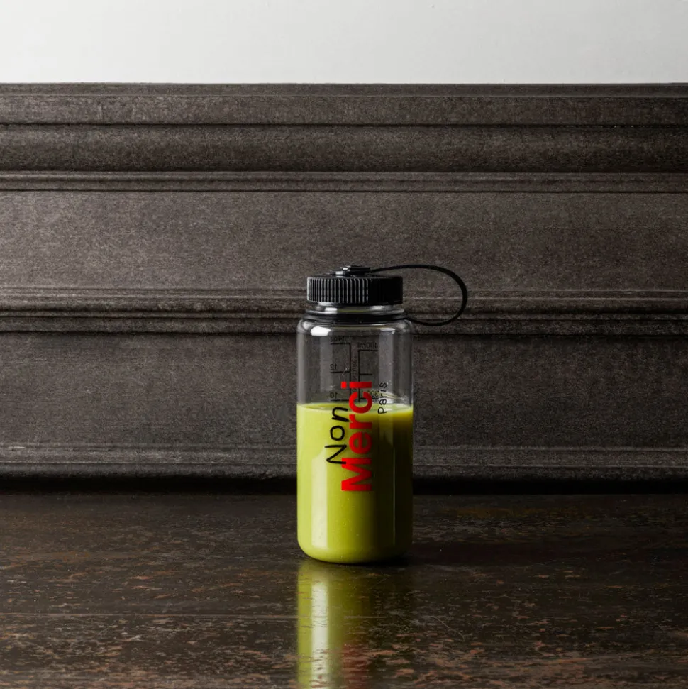 Gourde transparente arborant le logo Non Merci, pratique