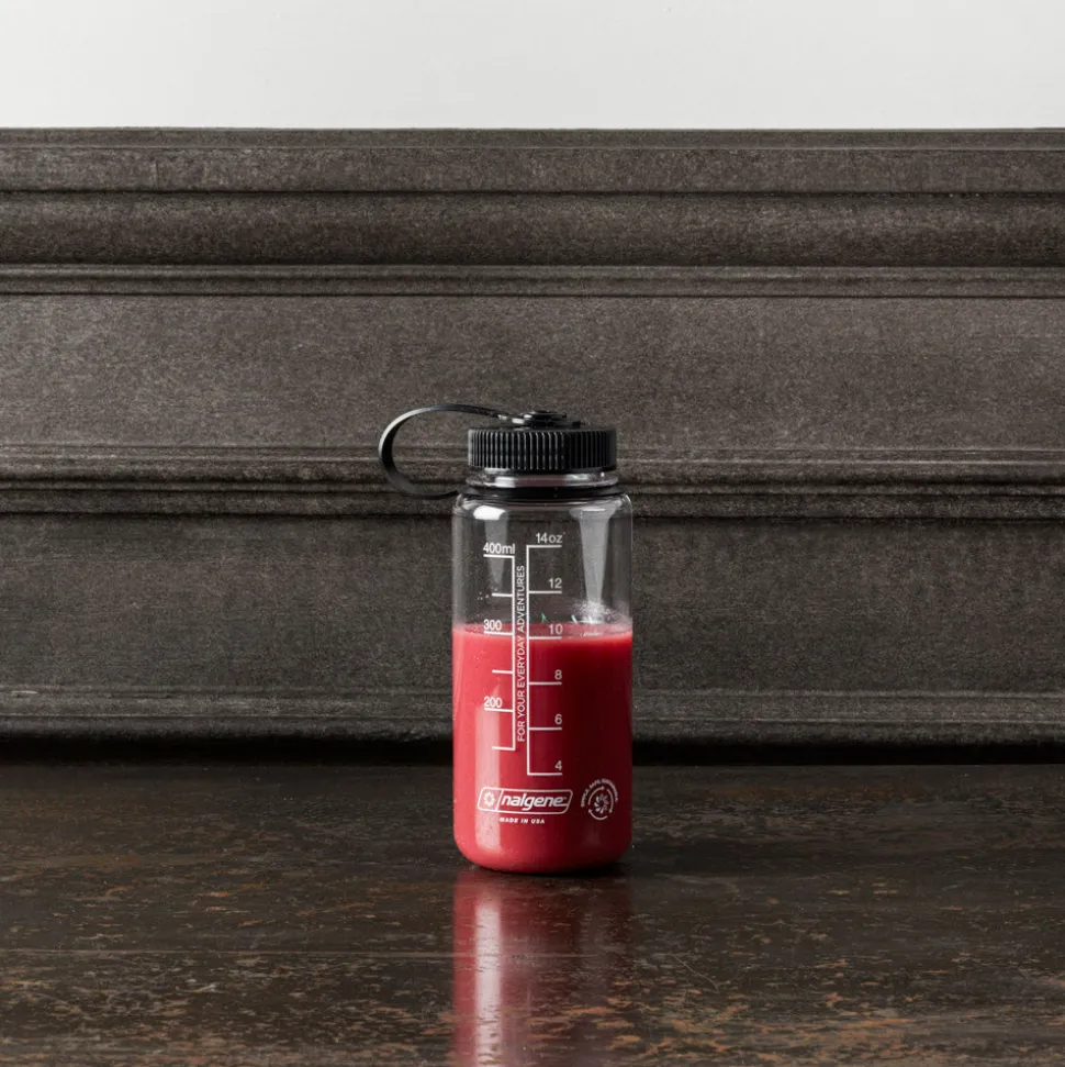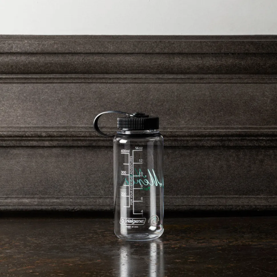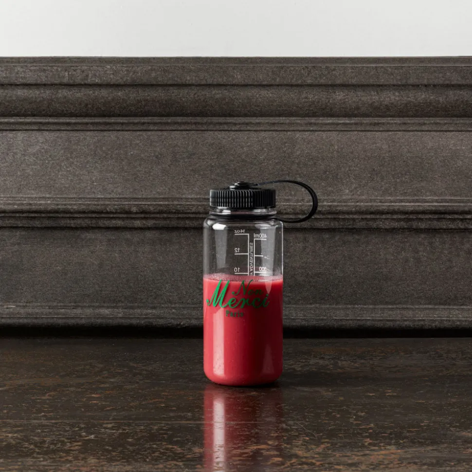 Gourde transparente arborant le logo Non Merci, pratique