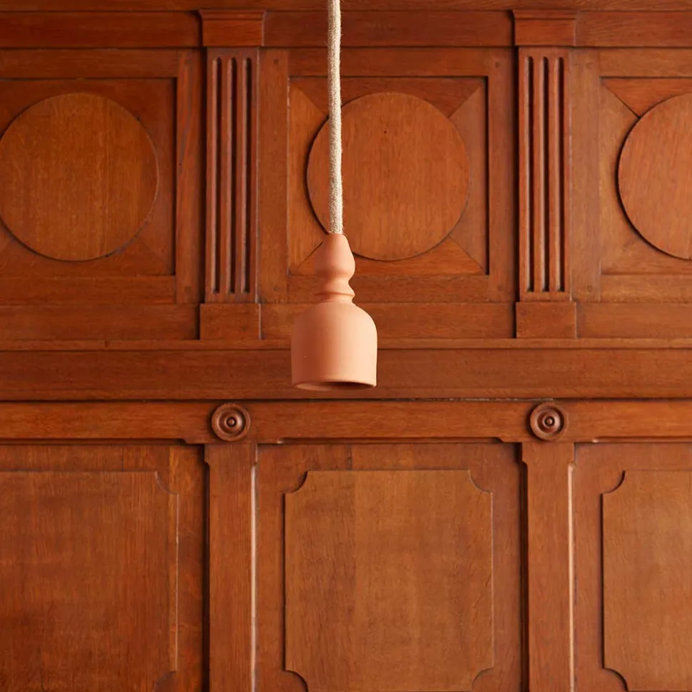 Petite suspension en terre cuite rouge avec câble naturel, fabriquée à la main en GrèceChaque pièce est uniqueAppor…