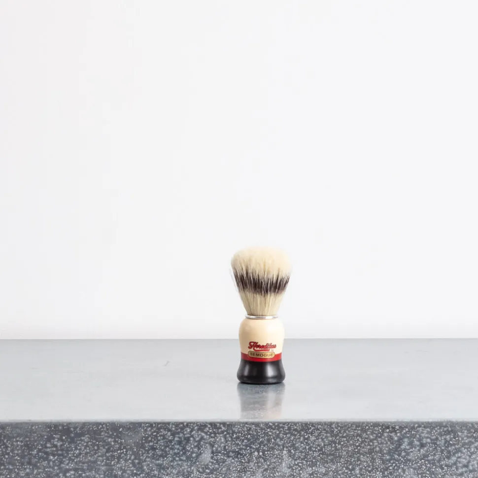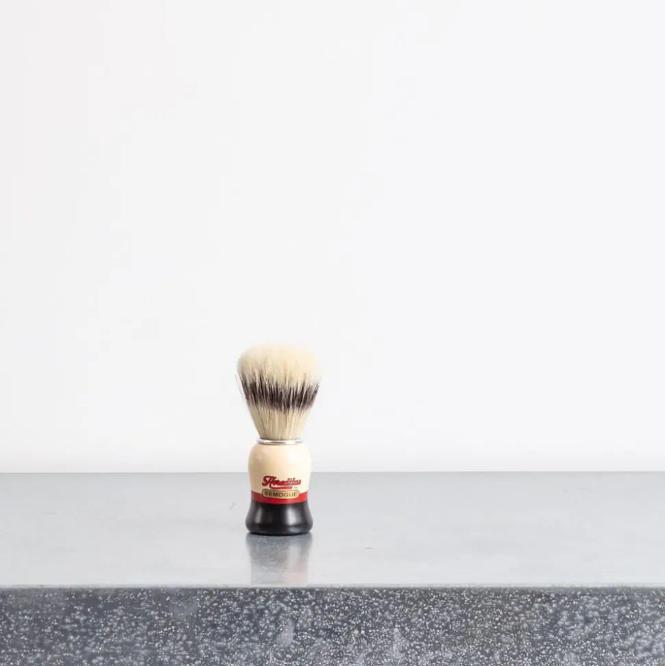Le blaireau Semogue est fabriqué avec les célèbres poils de sanglier de Semogue