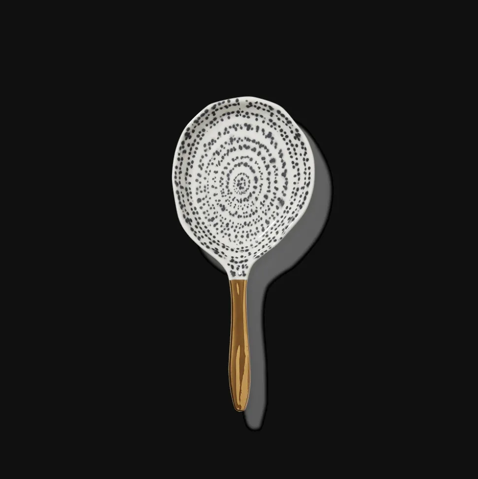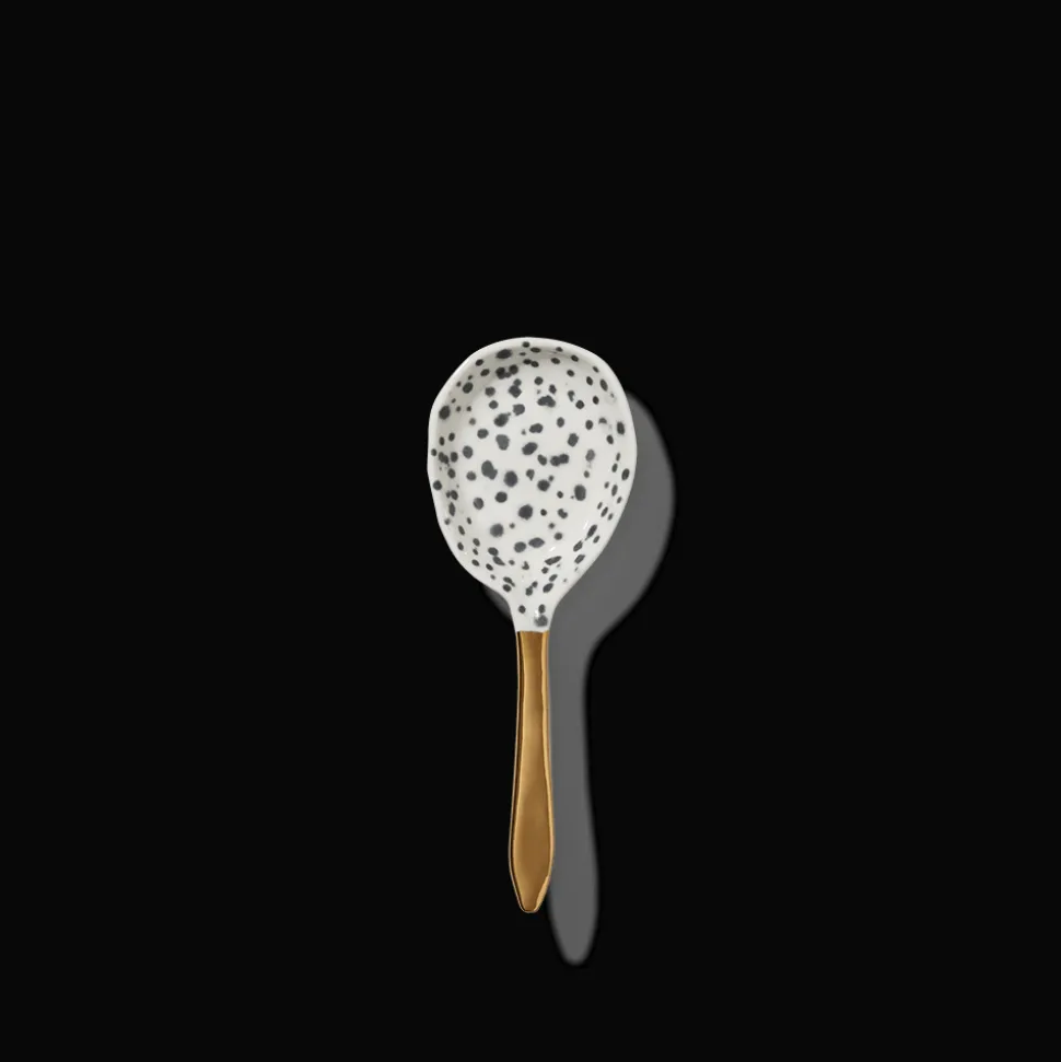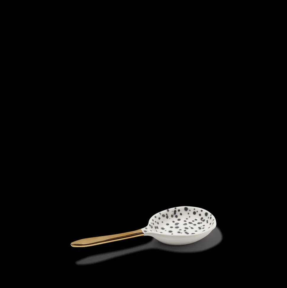 Petite cuillère de présentation en porcelaineMotif tacheté, manche doréVendue à l’unitéDeux tailles disponibles:Pe…