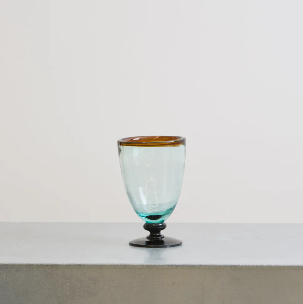 Verre à pied transparent avec ligne ambreFabriqué à la mainIdéal pour habiller vos tables avec éléganceDimensions:…