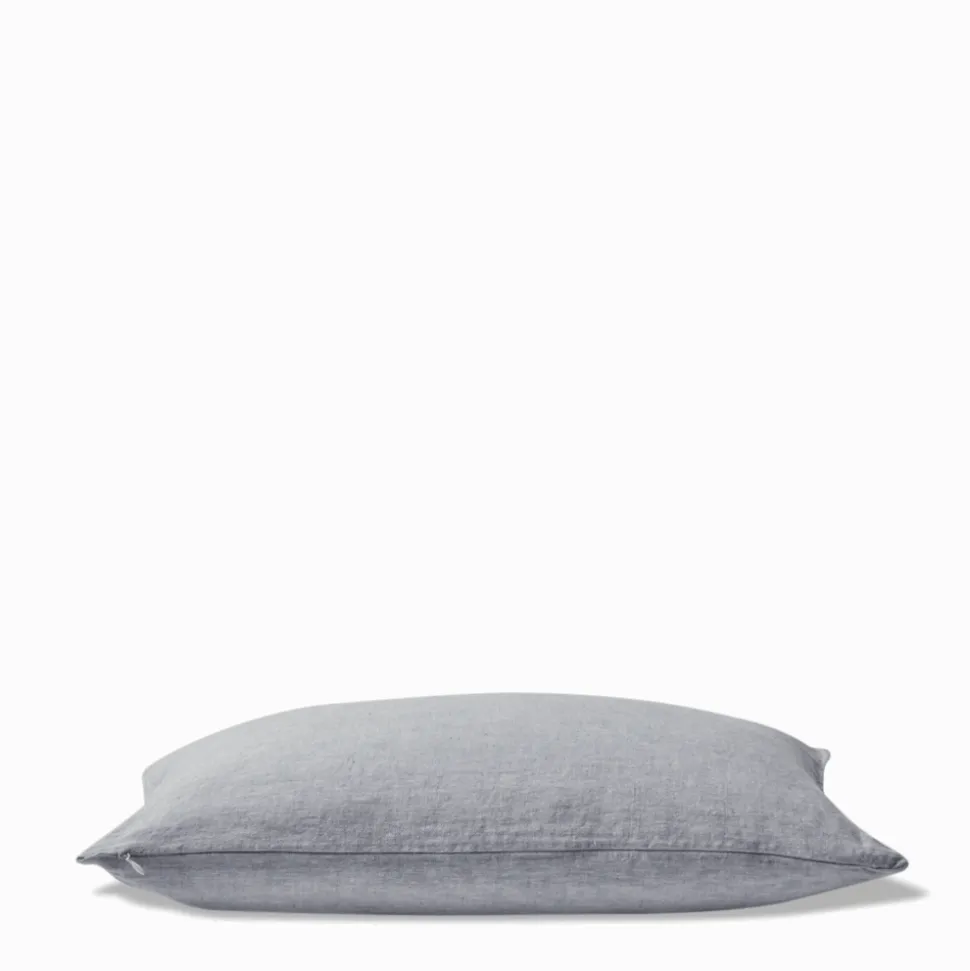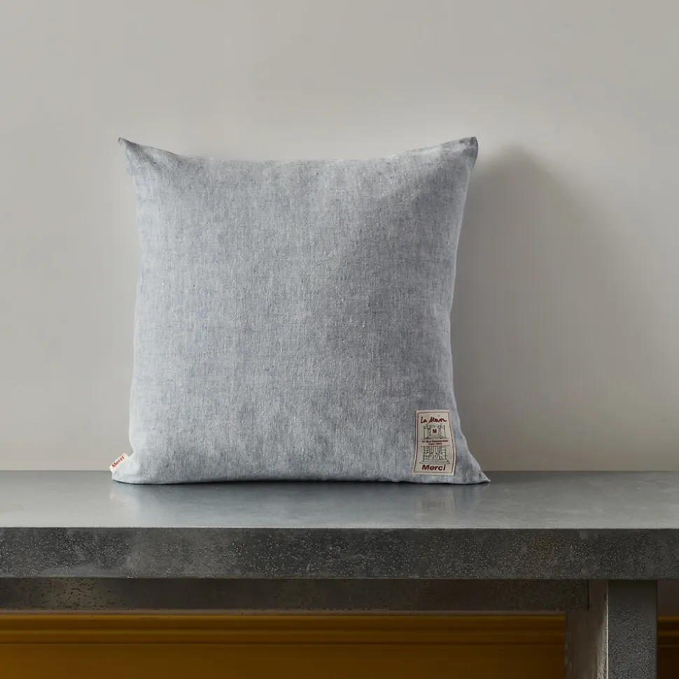 Coussin en lin épais en chambray, deux couleurs de fils se mélangent pour former un coloris unique