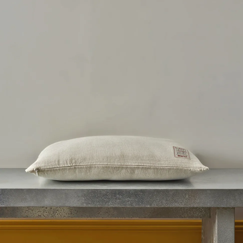 Merci décline son linge de maison en lin traditionnel en des coussins épais : trois tailles et neuf nouveaux coloris.