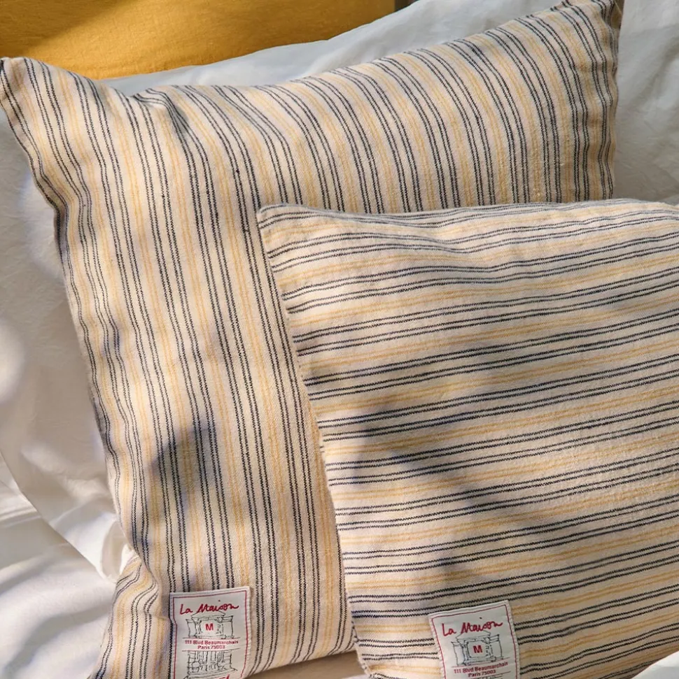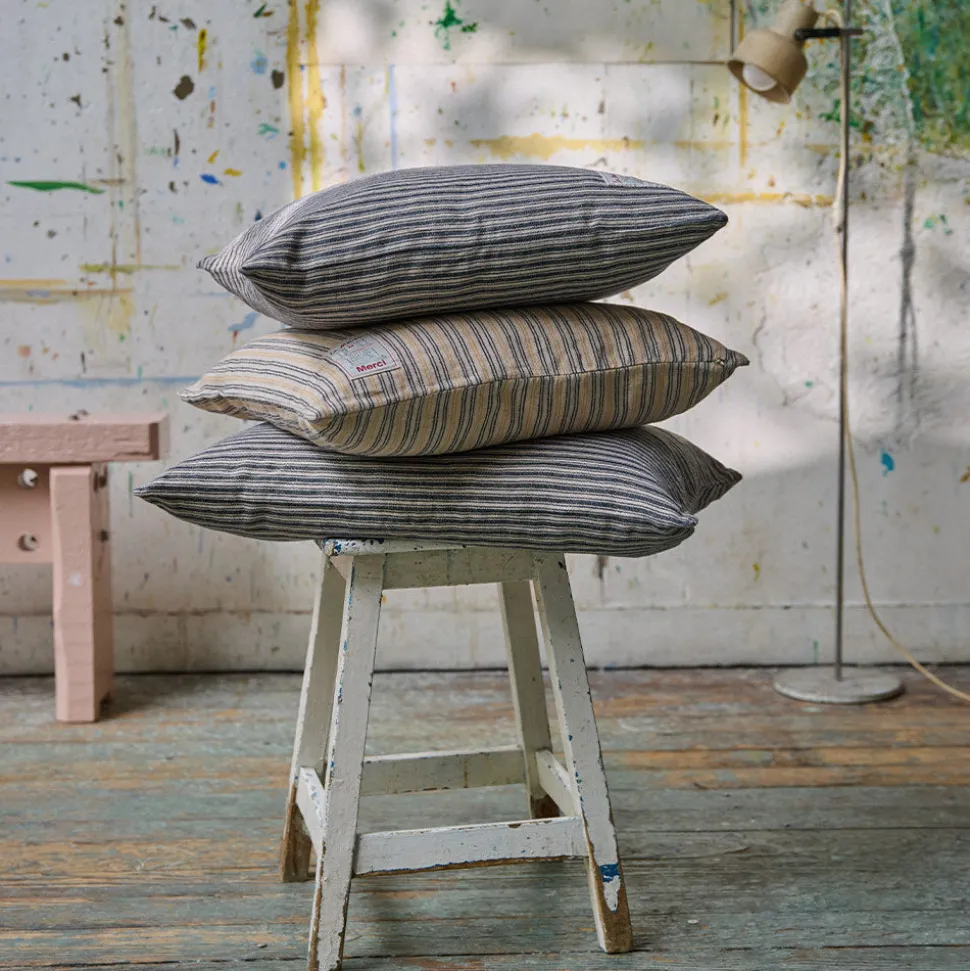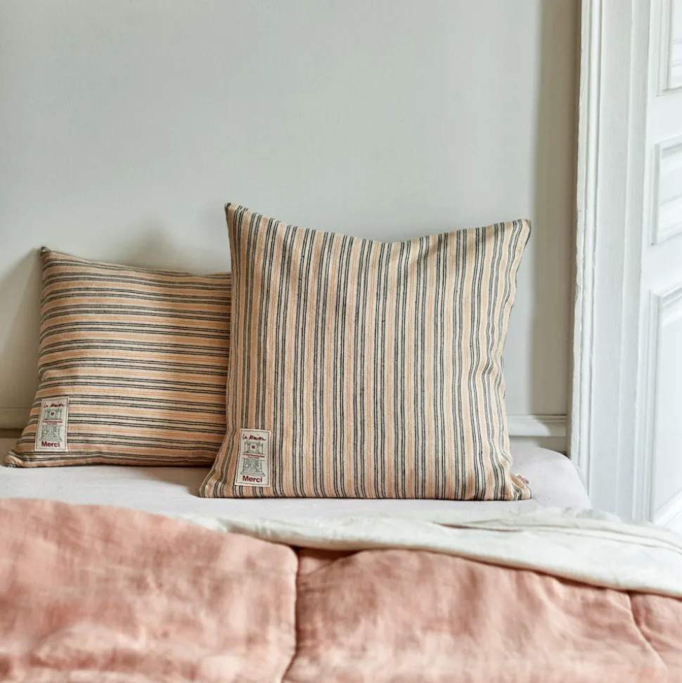 Merci décline son linge de maison en lin traditionnel en des coussins épais