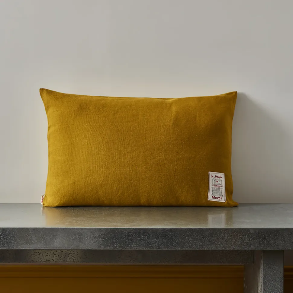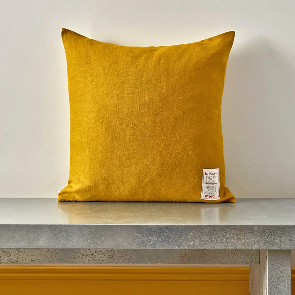 Merci décline son linge de maison en lin traditionnel en des coussins épais : trois tailles et neuf nouveaux coloris.