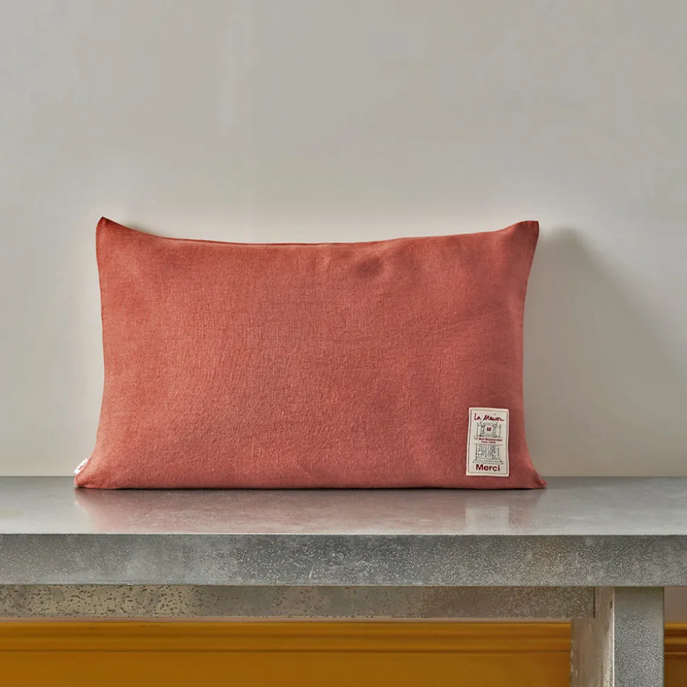 Merci décline son linge de maison en lin traditionnel en des coussins épais : trois tailles et neuf nouveaux coloris.
