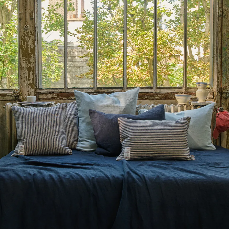 Merci décline son linge de maison en lin traditionnel en des coussins épais