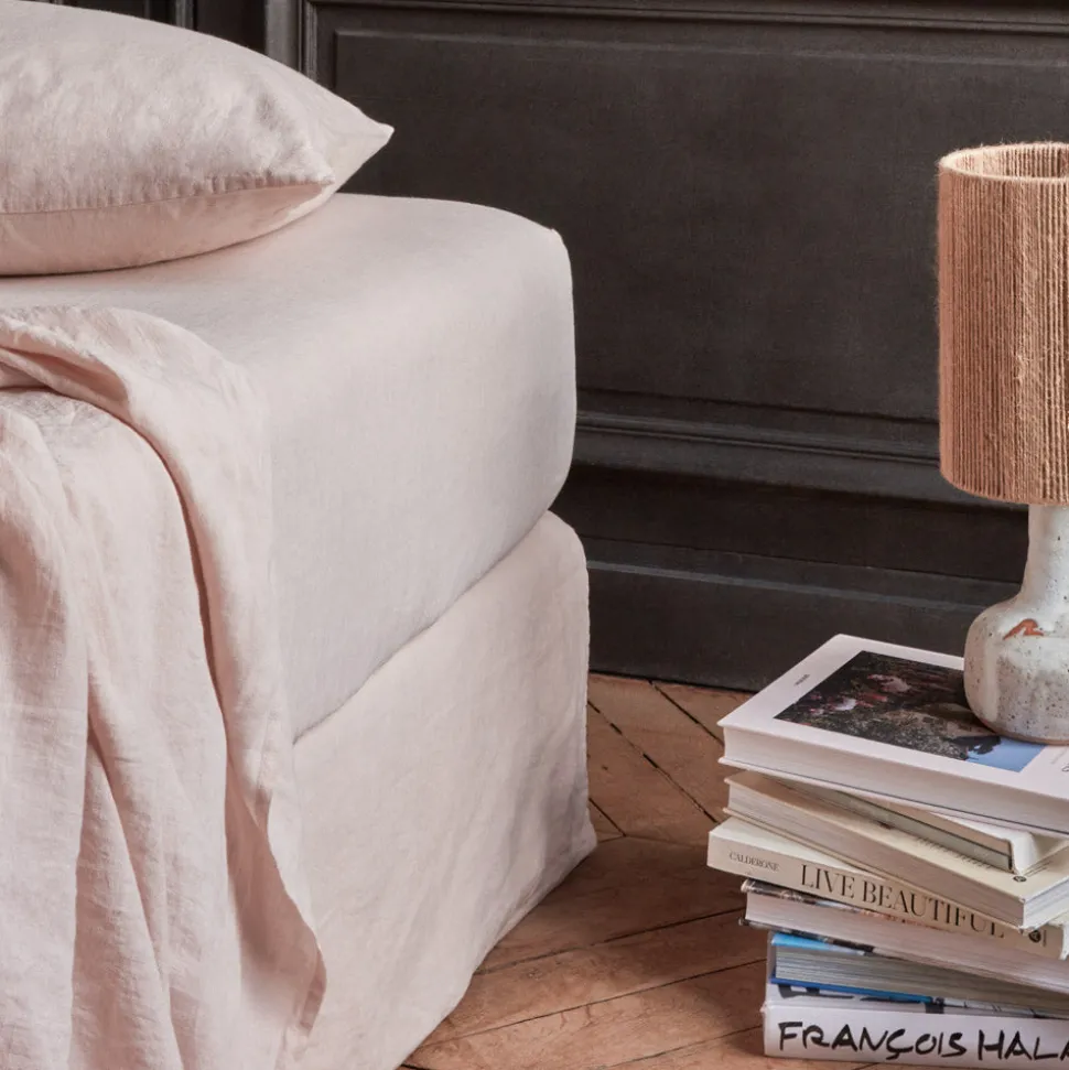 200 LINTEX Draps-housse-Drap-housse en lin lavé – Beige Rosé